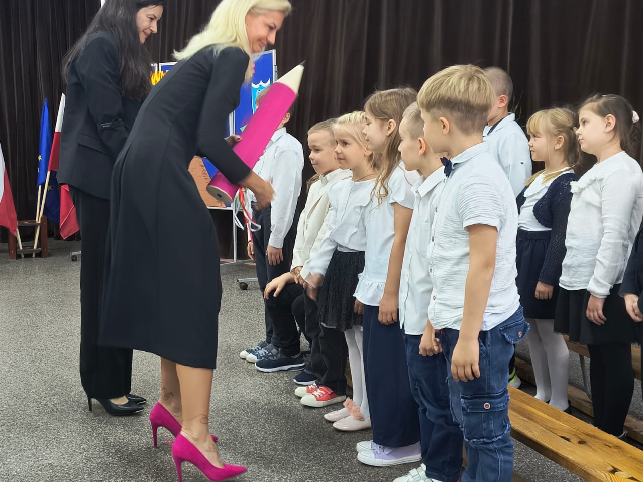 14.10.2025 r. odbyła się w naszej szkole uroczystość Pasowania na ucznia klasy I. Uczniowie zaprezentowali krótki program artystyczny, po którym złożyli uroczyste ślubowanie. Następnie Panie Dyrektorki dokonały symbolicznego pasowania ,,zaczarowanym ołówkiem". W salach lekcyjnych czekały czekały przygotowane przez Rodziców upominki i słodki poczęstunek.