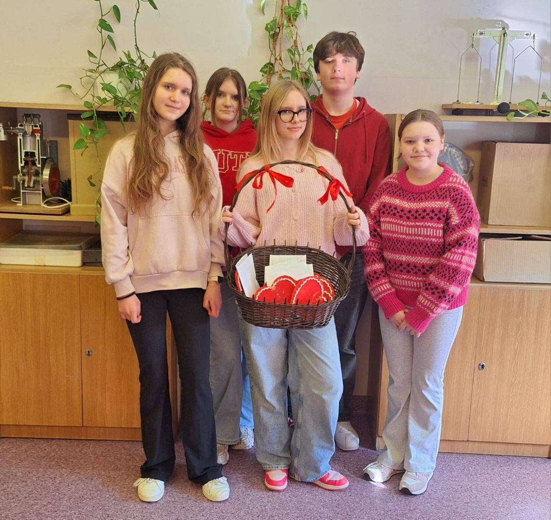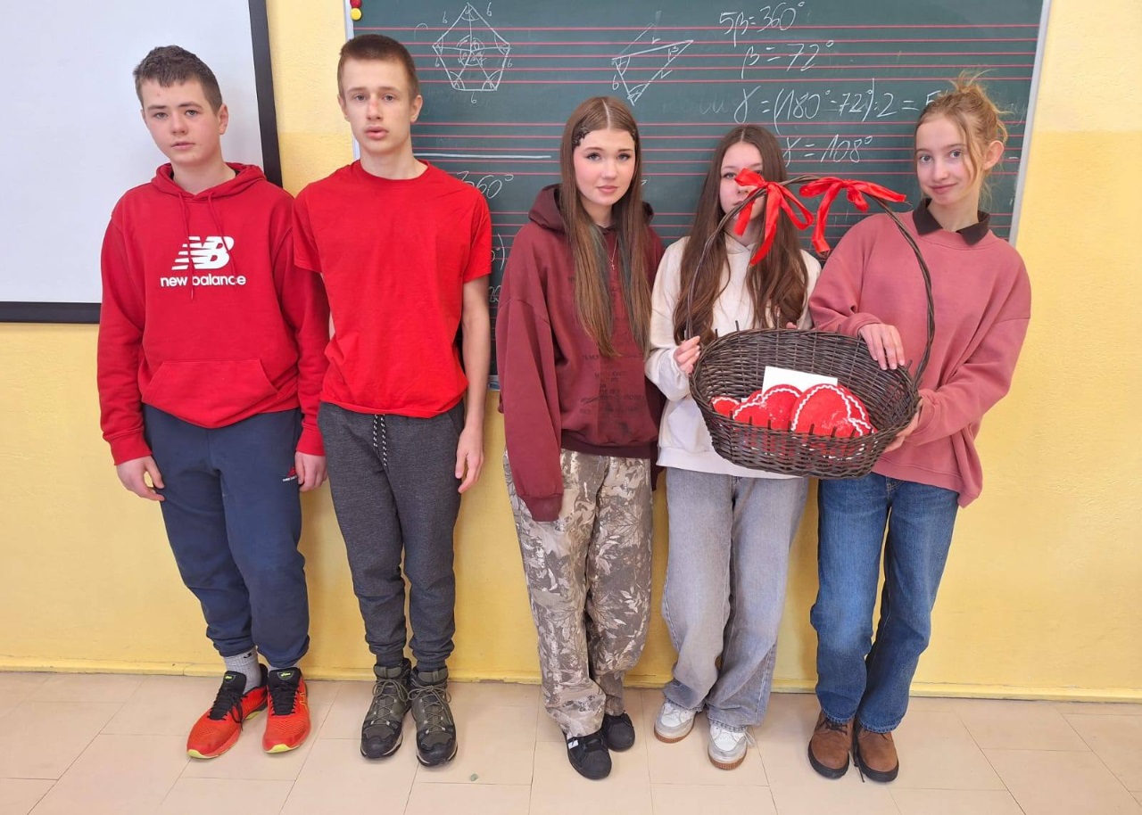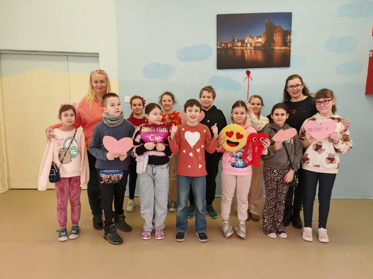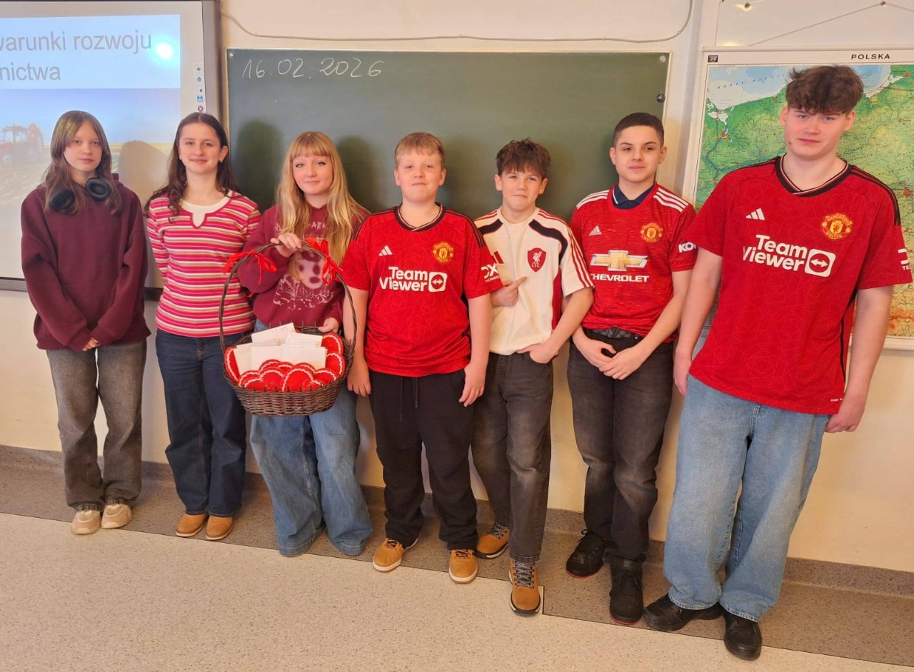 Od 09 do 12 lutego 2026r. uczniowie klas 4-8 SP mogli wrzucać do skrzynki walentynkowej liściki z miłym słowem, wyrazem sympatii. 16 lutego przedstawiciele Samorządu Uczniowskiego wręczali walentynki ich adresatom. Został ogłoszony konkurs na najliczniej przebraną klasę, w barwach czerwono-różowych.