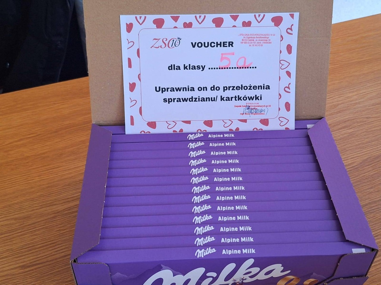 I miejsce – klasa 5a – wygrała słodycze oraz voucher uprawniający do przełożenia sprawdzianu/kartkówki.