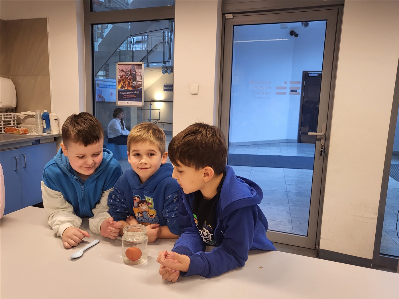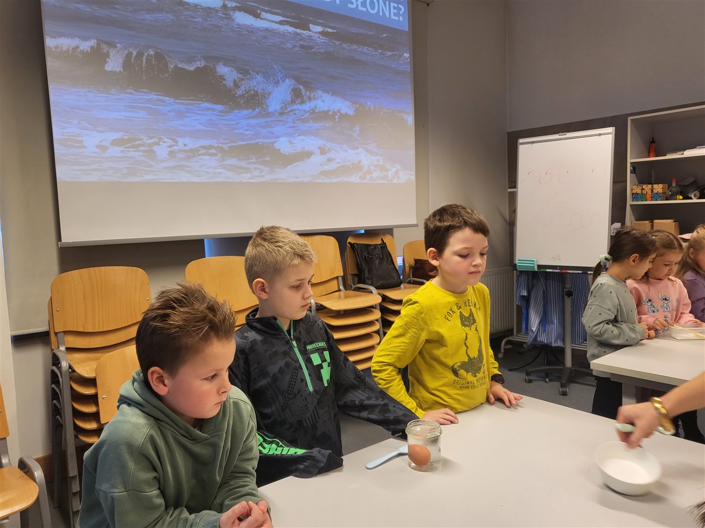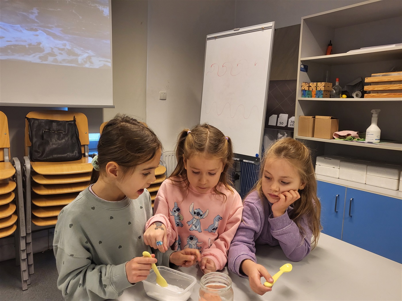 7 listopada 2025 uczniowie klasy 1a byli na zajęciach wyjaśniających morskie tajemnice. Podczas warsztatów dzieci wykonały szereg doświadczeń, które pozwoliły im lepiej poznać wodę i sól oraz, oczywiście, dowiedzieć się, dlaczego morze jest słone. Pierwszoklasiści dowiedzieli się również, dlaczego w słonej wodzie lżej się pływa, dlaczego nie powinno się pić wody morskiej, dlaczego żółwie płaczą, a mewy mają katar i skąd w morzu wzięła się sól.