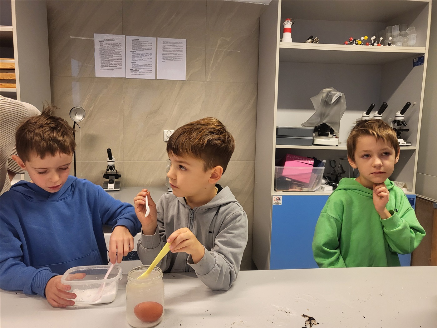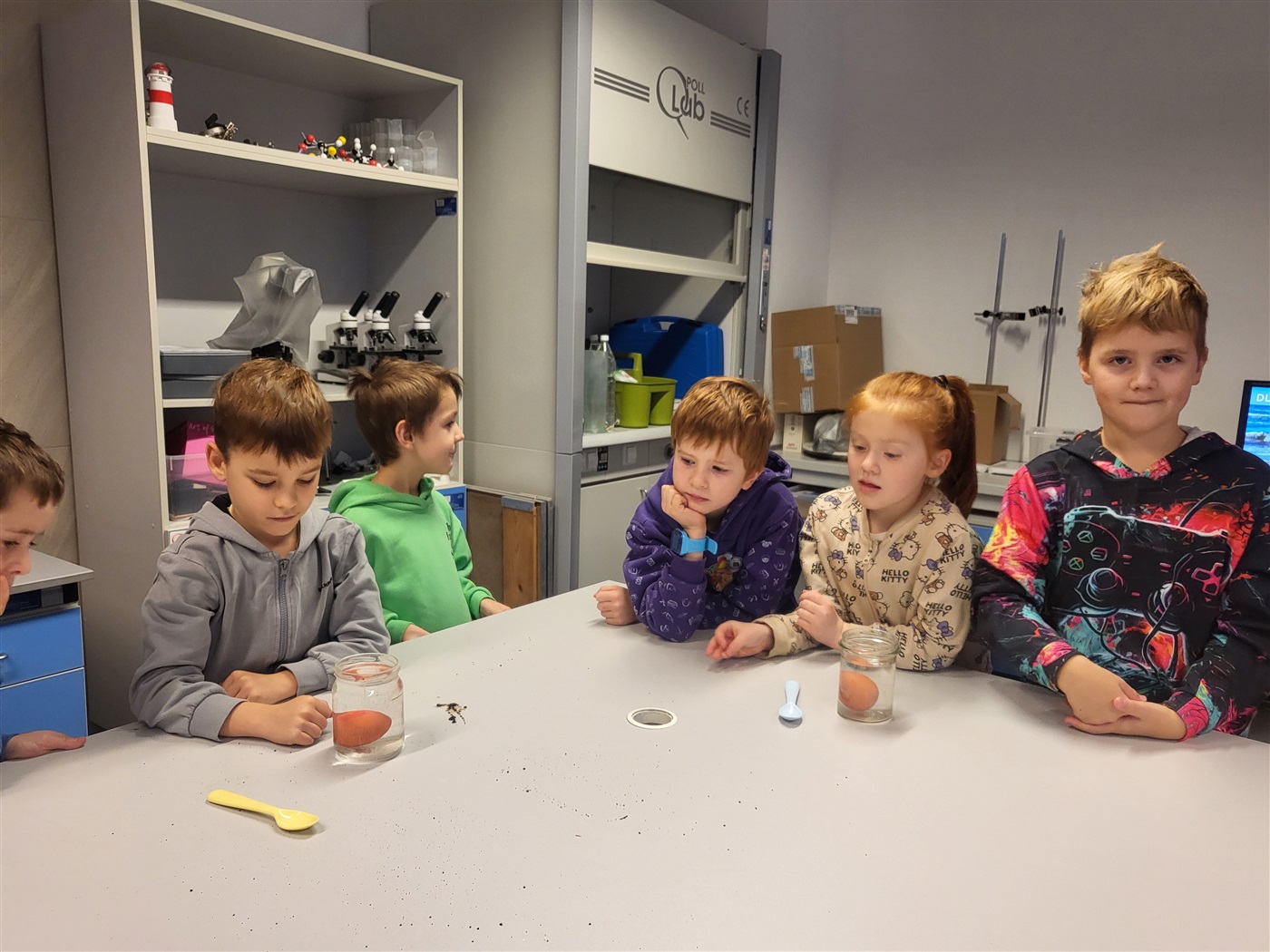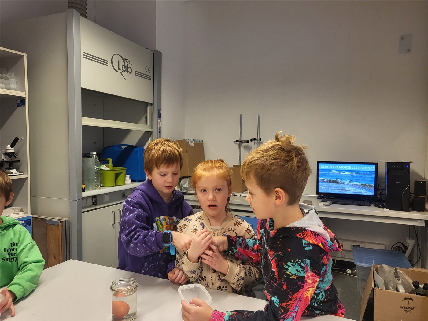 7 listopada 2025 uczniowie klasy 1a byli na zajęciach wyjaśniających morskie tajemnice. Podczas warsztatów dzieci wykonały szereg doświadczeń, które pozwoliły im lepiej poznać wodę i sól oraz, oczywiście, dowiedzieć się, dlaczego morze jest słone. Pierwszoklasiści dowiedzieli się również, dlaczego w słonej wodzie lżej się pływa, dlaczego nie powinno się pić wody morskiej, dlaczego żółwie płaczą, a mewy mają katar i skąd w morzu wzięła się sól.