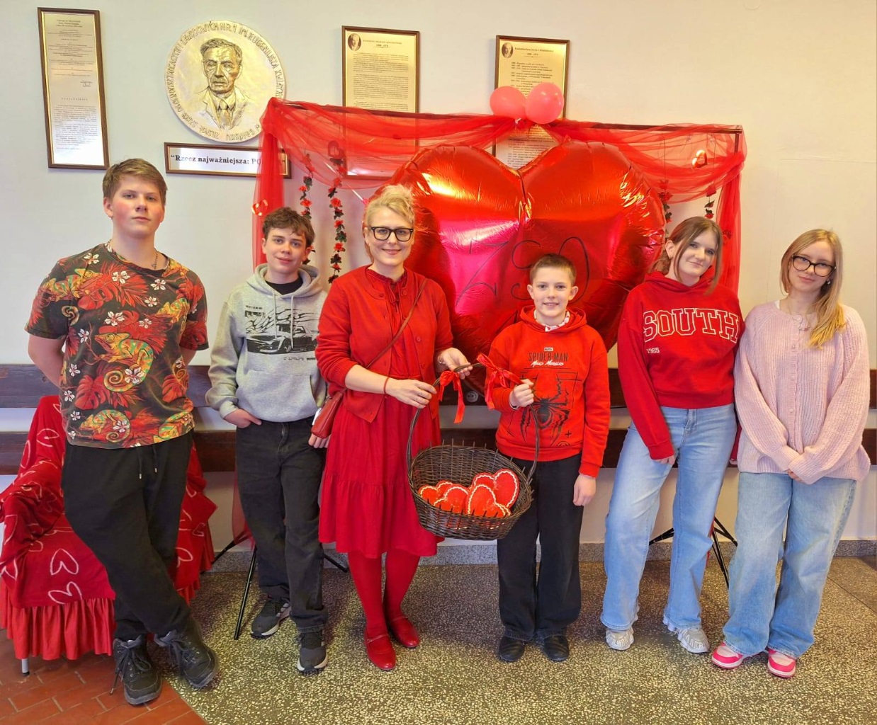 Od 09 do 12 lutego 2026r. uczniowie klas 4-8 SP mogli wrzucać do skrzynki walentynkowej liściki z miłym słowem, wyrazem sympatii. 16 lutego przedstawiciele Samorządu Uczniowskiego wręczali walentynki ich adresatom. Został ogłoszony konkurs na najliczniej przebraną klasę, w barwach czerwono-różowych.